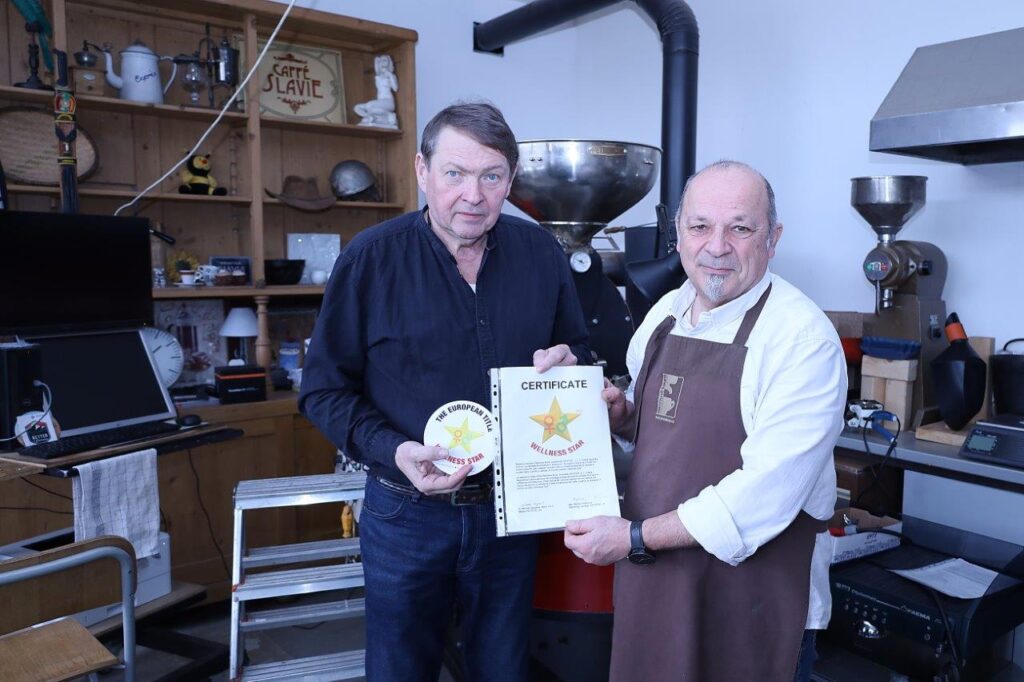 1.března 2026 – další slavnostní den předání našeho Evropského titulu Wellness Star – Buongiorno Kavárna s Pražírnou Velké Lečice, pan Roberto Trevisan a Miroslav Sanytrák